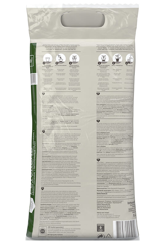 Pokon Potgrond 5L is een goede voedingsbodem voor alle planten. De potgrond bevat uitsluitend hoogwaardige grondstoffen, zoals turfstrooisel, tuinturf, kalk en meststoffen.