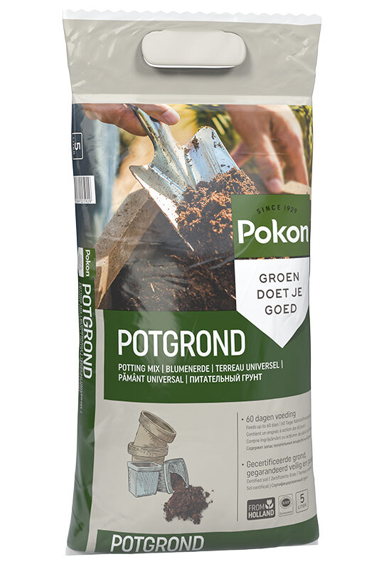 In de grond zitten voedingsstoffen die door de plant worden opgenomen. Na verloop van tijd raken deze voedingsstoffen op. Aan Pokon Potgrond is voor 2 maanden voeding toegevoegd. Het is belangrijk om planten hierna regelmatig bij te voeden met een goede meststof of vloeibare plantenvoeding van Pokon.