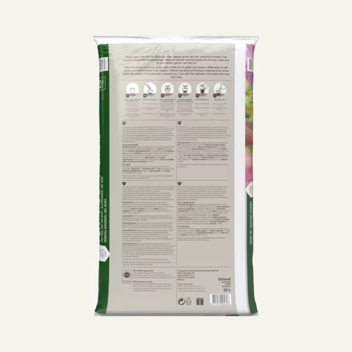 Deze potgrond bevat uitsluitend hoogwaardige, natuurlijke grondstoffen, zoals turfstrooisel, tuinturf, kalk en meststoffen. Hierdoor wordt water goed vastgehouden en nemen de planten de voeding goed op. Bovendien is deze potgrond voorzien van langwerkende meststofkorrels met voeding voor 6 maanden.