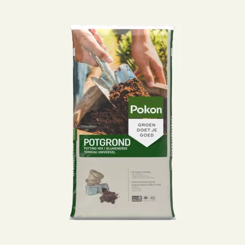 In de grond zitten voedingsstoffen die door de plant worden opgenomen. Na verloop van tijd raken deze voedingsstoffen op. Aan Pokon Potgrond is voor 2 maanden voeding toegevoegd. Het is belangrijk om planten hierna regelmatig bij te voeden met een goede meststof of vloeibare plantenvoeding van Pokon.
