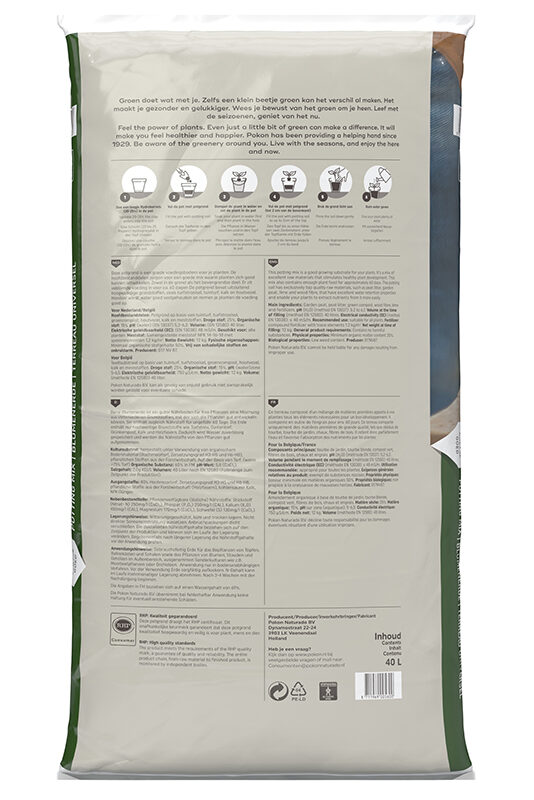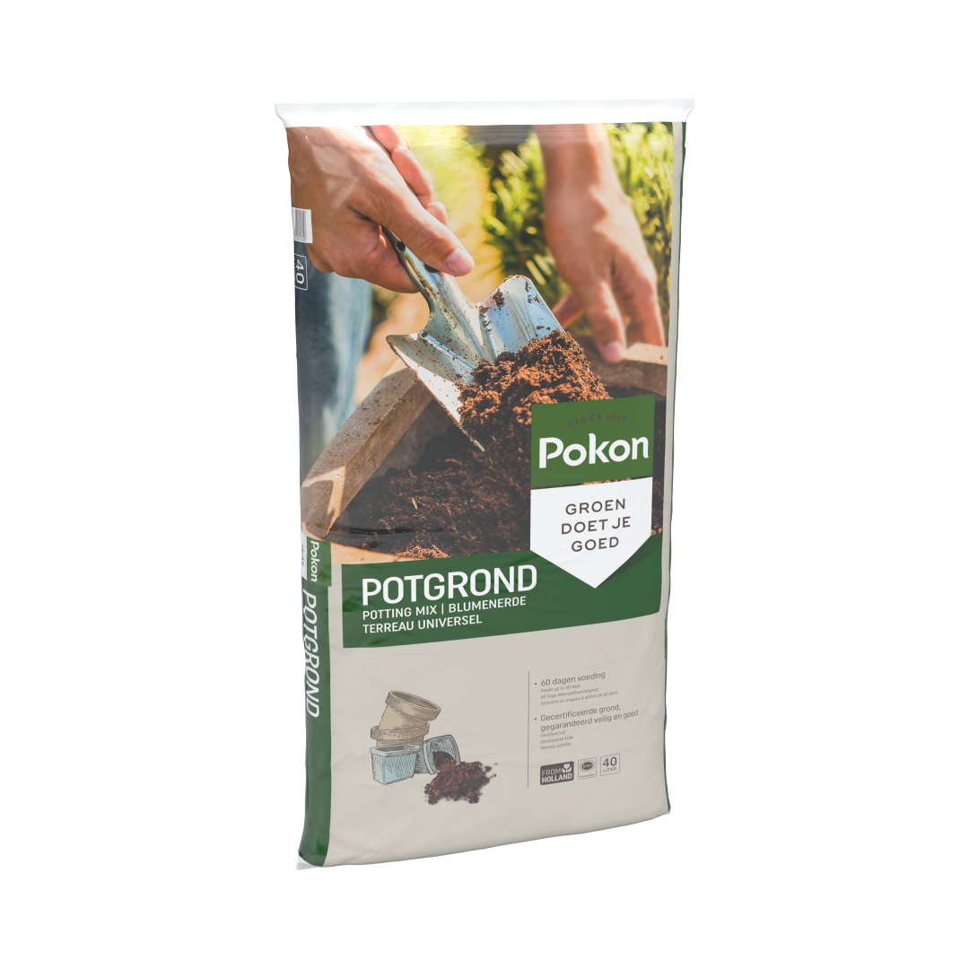 In de grond zitten voedingsstoffen die door de plant worden opgenomen. Na verloop van tijd raken deze voedingsstoffen op. Aan Pokon Potgrond is voor 2 maanden voeding toegevoegd. Het is belangrijk om planten hierna regelmatig bij te voeden met een goede meststof of vloeibare plantenvoeding van Pokon.