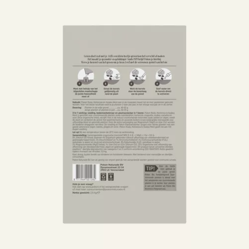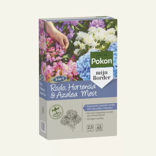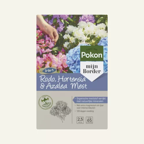 Pokon Rodo, Hortensia & Azalea Mest, verrijkt met in de natuur voorkomende mineralen (zeoliet en algen), voedt de plant en verbetert de grond. Deze organische voeding zorgt ervoor dat je hortensia's, rododendrons, azalea's en andere zuurminnende planten uitbundig bloeien en meer weerstand krijgen. Door de extra toevoeging van Magnesium (MgO) en IJzer (Fe) krijgen je bloemen een intensere kleur.