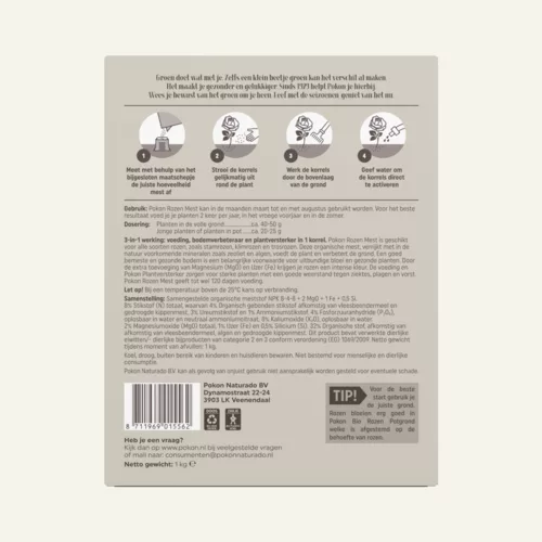 - Verhoog de weerstand tegen ziekten, schimmels en andere belagers van rozen met Pokon Bio Rozen Potgrond en speciale mest.