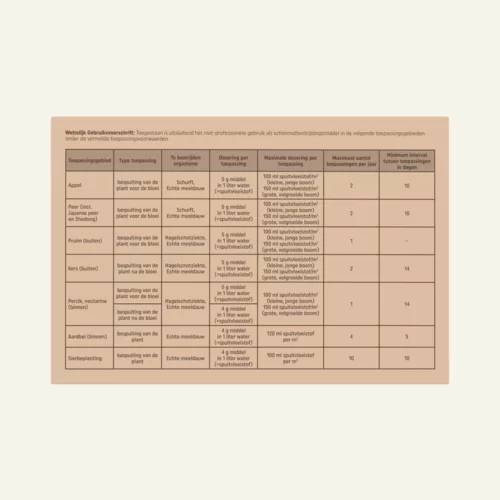 De werkzame stof is 80% zwavel (CAS nr. 7704-34-9). Het toelatingsnummer is 16153 N.