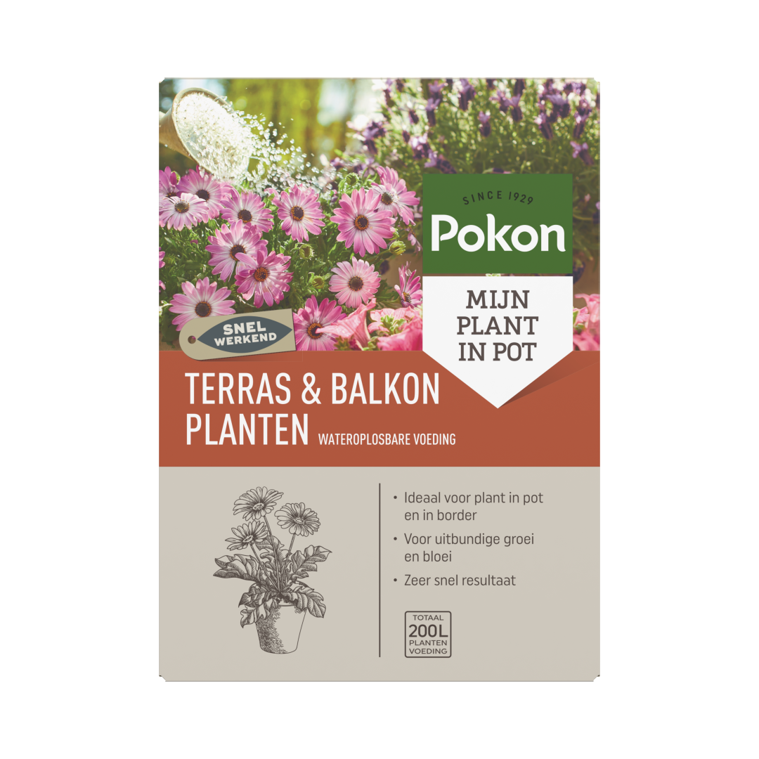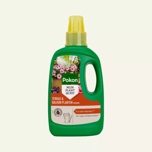 Pokon Terras & Balkon Planten Voeding helpt je planten om mooie groene bladeren en veel bloemen te krijgen. Deze voeding heeft belangrijke voedingsstoffen, sporenelementen en extra humus. Hierdoor krijgen je planten alles wat ze nodig hebben om goed te groeien en bloeien. Na 7 dagen zie je al resultaat en je planten groeien en bloeien 2 keer zoveel als planten zonder voeding. Zo blijven je terras- en balkonplanten sterk en gezond!