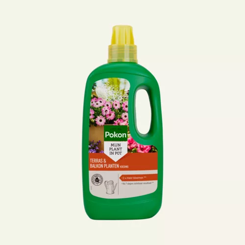 Pokon Terras & Balkon Planten Voeding helpt je planten om mooie groene bladeren en veel bloemen te krijgen. Deze voeding heeft belangrijke voedingsstoffen, sporenelementen en extra humus. Hierdoor krijgen je planten alles wat ze nodig hebben om goed te groeien en bloeien. Na 7 dagen zie je al resultaat en je planten groeien en bloeien 2 keer zoveel als planten zonder voeding. Zo blijven je terras- en balkonplanten sterk en gezond!