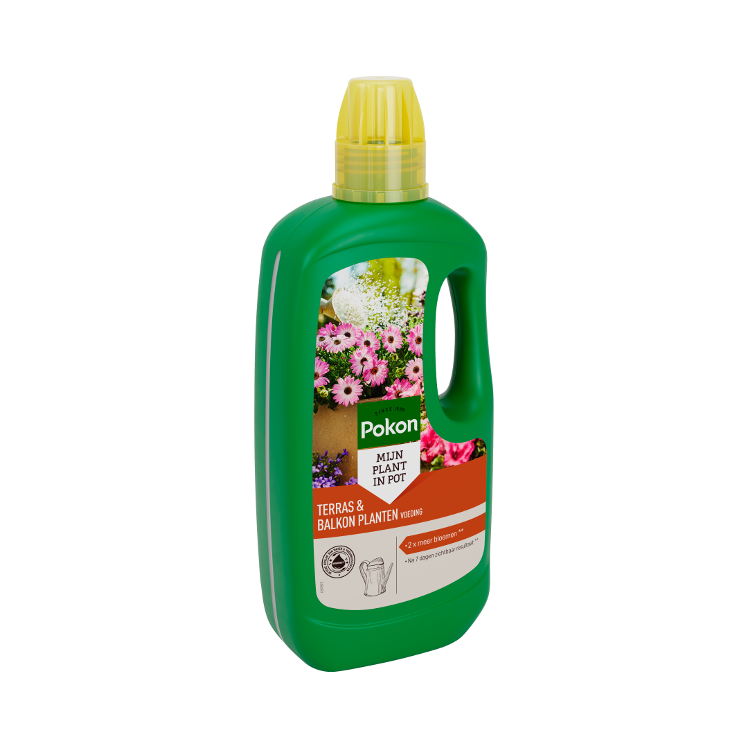 Pokon Terras & Balkon Planten Voeding helpt je planten om mooie groene bladeren en veel bloemen te krijgen. Deze voeding heeft belangrijke voedingsstoffen, sporenelementen en extra humus. Hierdoor krijgen je planten alles wat ze nodig hebben om goed te groeien en bloeien. Na 7 dagen zie je al resultaat en je planten groeien en bloeien 2 keer zoveel als planten zonder voeding. Zo blijven je terras- en balkonplanten sterk en gezond!