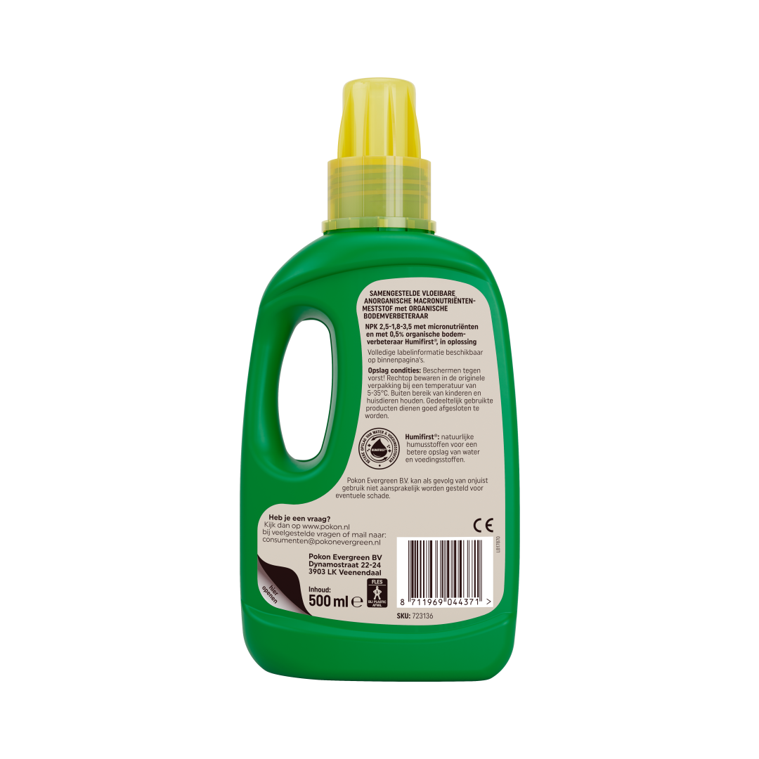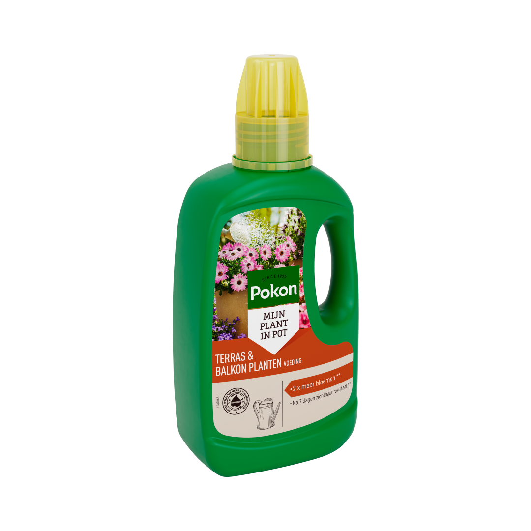 Pokon Terras & Balkon Planten Voeding helpt je planten om mooie groene bladeren en veel bloemen te krijgen. Deze voeding heeft belangrijke voedingsstoffen, sporenelementen en extra humus. Hierdoor krijgen je planten alles wat ze nodig hebben om goed te groeien en bloeien. Na 7 dagen zie je al resultaat en je planten groeien en bloeien 2 keer zoveel als planten zonder voeding. Zo blijven je terras- en balkonplanten sterk en gezond!
