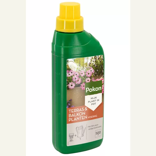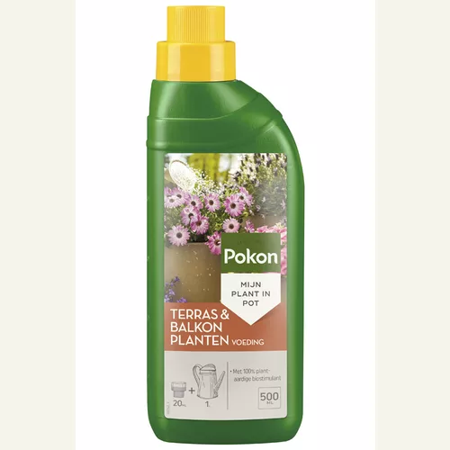 Je planten op het terras of balkon in een pot zullen mooier bloeien wanneer je deze planten voedt met Pokon Terras & Balkon Planten Voeding. Deze voeding bevat essentiële voedingselementen en een rijke mix van sporenelementen waardoor jouw terras- & balkonplanten mooi en gezond blijven.