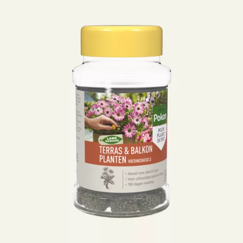 Deze "slimme" voedingskegels geven geleidelijk voeding af aan je planten. Onder invloed van vocht en temperatuur werken ze wel 180 dagen. Je terras- en balkonplanten, zoals geraniums, violen en petunia's krijgen zo de voeding wanneer ze die nodig hebben.