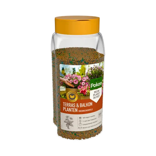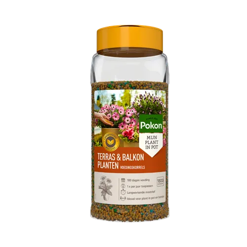 Pokon Terras & Balkon Planten Voedingskorrels zijn snelwerkende meststoffen met een samenstelling van NPK 11-11-18 + 2Mg0 + Micronutriënten.