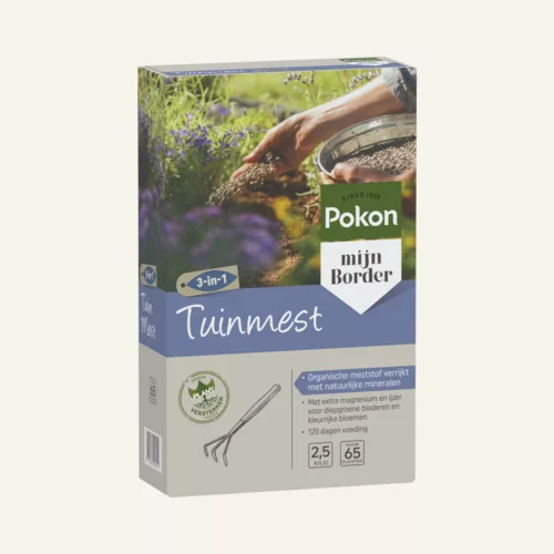 Pokon Tuinmest, verrijkt met in de natuur voorkomende mineralen (zeoliet en algen), voedt de plant en verbetert de grond. De organische voeding zorgt ervoor dat je tuinplanten goed groeien, bloeien en meer weerstand krijgen. Door de extra toevoeging van Magnesium (MgO) en IJzer (Fe) worden je planten mooier, extra groen en bloeien ze intenser.