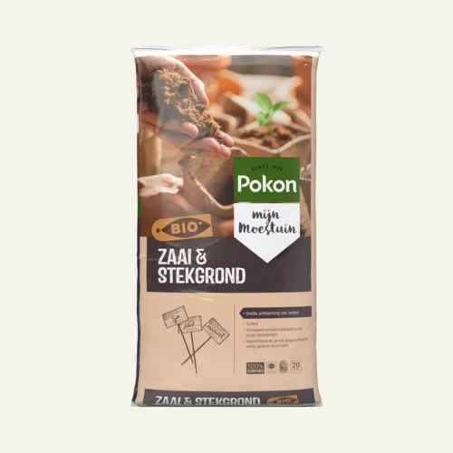 Pokon Bio Zaai & Stekgrond Turfvrij is een biologische, turfvrije potgrond geschikt voor het voorzaaien en stekken van jonge plantjes in bloempotten, kweekpotjes, vensterbankkastjes en tuinkassen. Deze grond heeft een extra fijne structuur. Hierdoor kunnen stekjes goed wortelen en beschadigen de wortels minder snel bij het verplanten. Wij adviseren om voor het stekken van sierplanten en kamerplanten gebruik te maken van Pokon Stekpoeder. In deze potgrond zitten bovendien biologische meststoffen die voor 100 dagen voeding geven. Met Pokon Bio Zaai & Stekgrond ontwikkelen zaailingen en stekjes zich goed, zowel boven- als ondergronds.