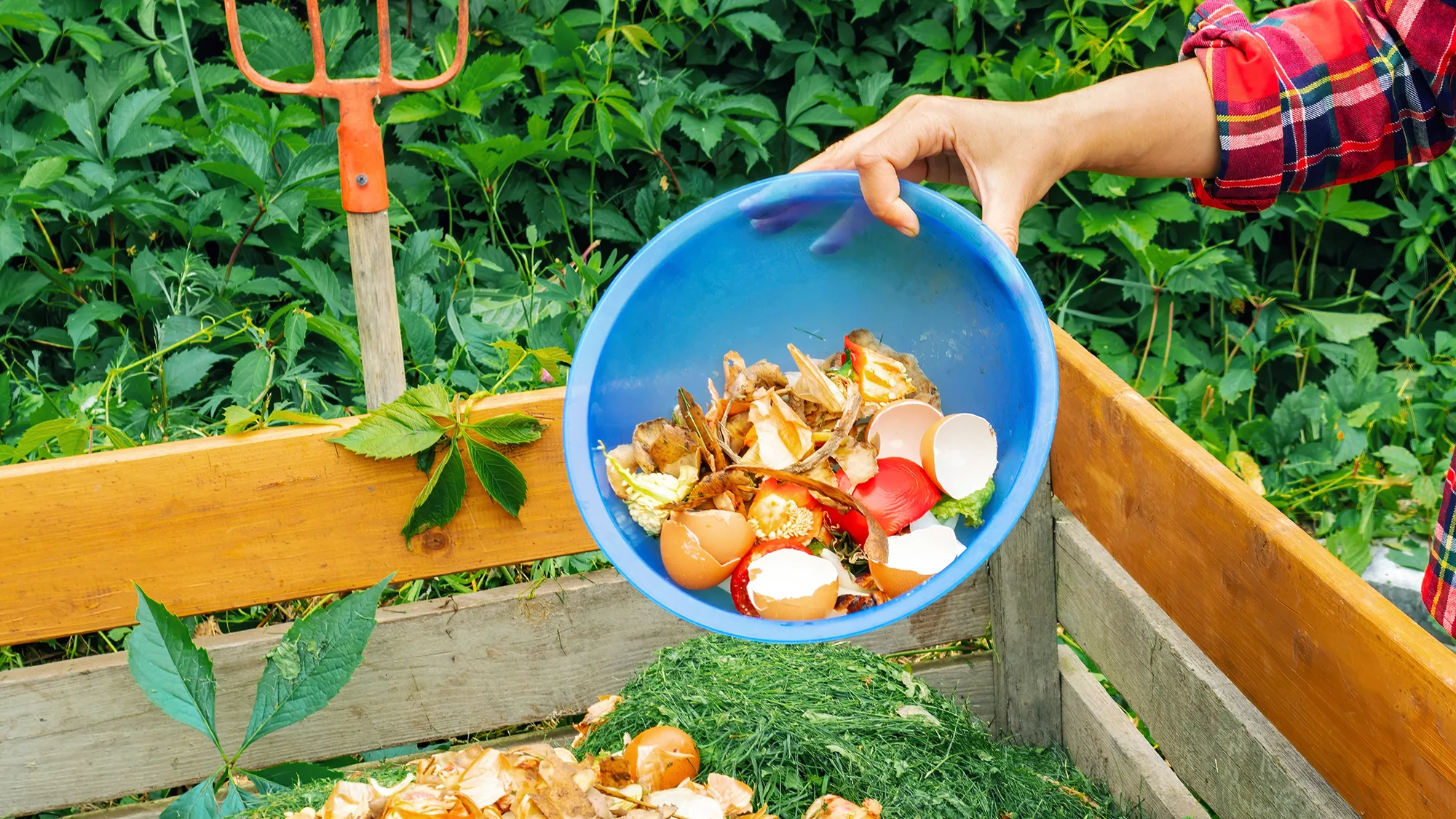 Gekookte etensresten, oud brood, en niet-biologische aardappelschillen mogen niet gecomposteerd worden. Groente- en fruitresten en eierschalen mag je wel toevoegen.