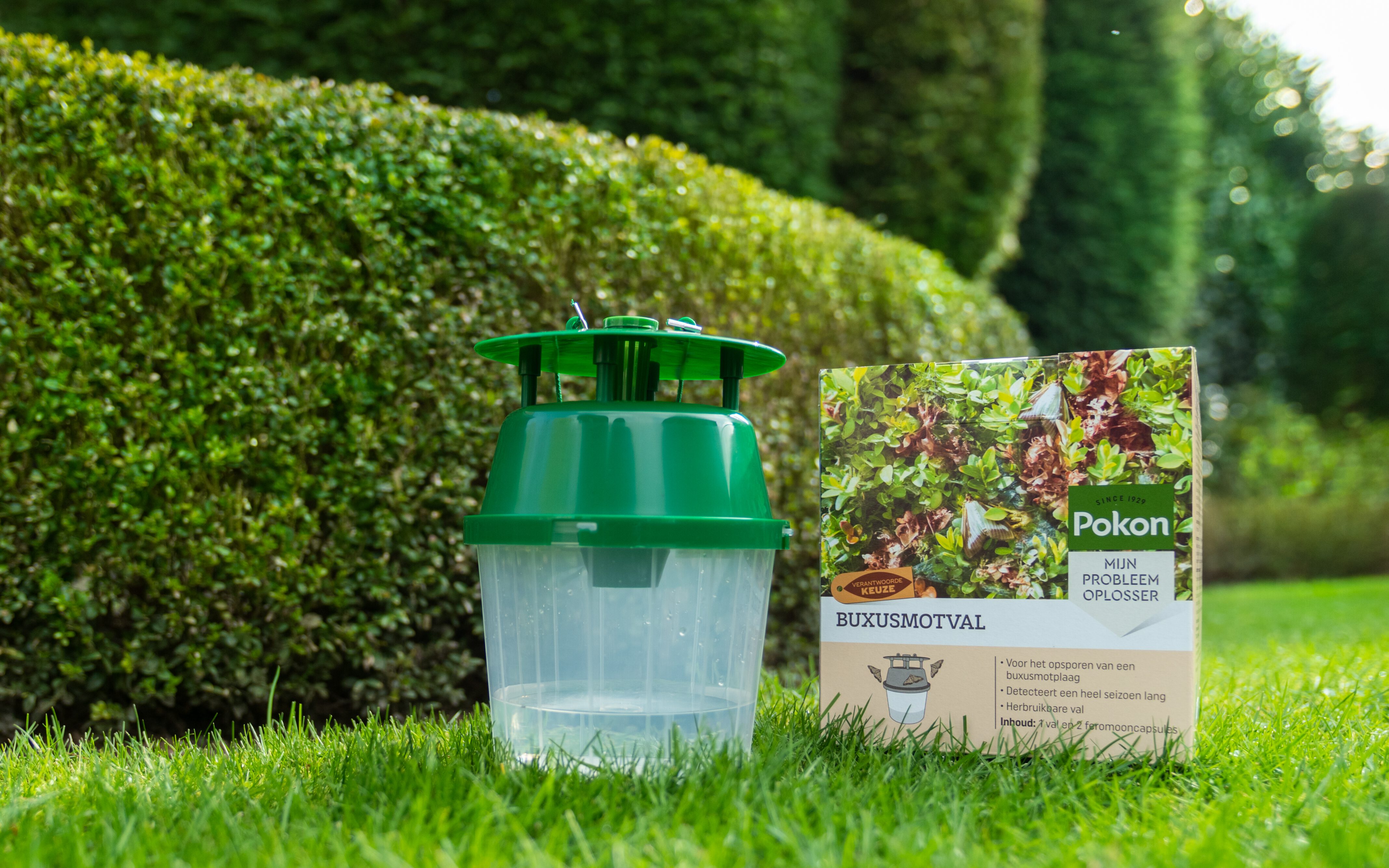 Om schade te beperken of als je snel wilt weten of er buxusmotten zijn, bieden wij de Pokon Buxusmotval: een detectieval enkel voor monitoring doeleinden. Met de Buxusmotval kan de aantastingsgraad van de buxus gedurende het hele seizoen worden gevolgd. Aan het einde van het seizoen kun je de monitoringval weghalen en schoonmaken. Lees hier hoe je een buxusmotval gebruikt.