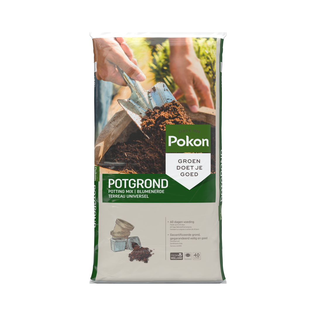 - Meng ⅓ aanplantgrond met ⅔ van de bestaande grond en vul het gat.