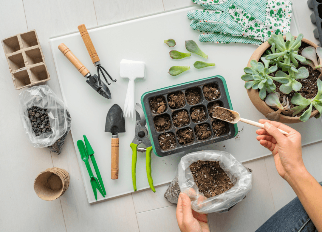 Tuingereedschap kun je vaak tweedehands kopen bij kringloopwinkels, rommelmarkten of online. Sommige tuinaccessoires kun je zelf maken van spullen die je al hebt. Een moestuinbak kun je bijvoorbeeld maken van gebruikte pallets. Een eierdoos kun je gebruiken als zaaitray. Wees creatief!