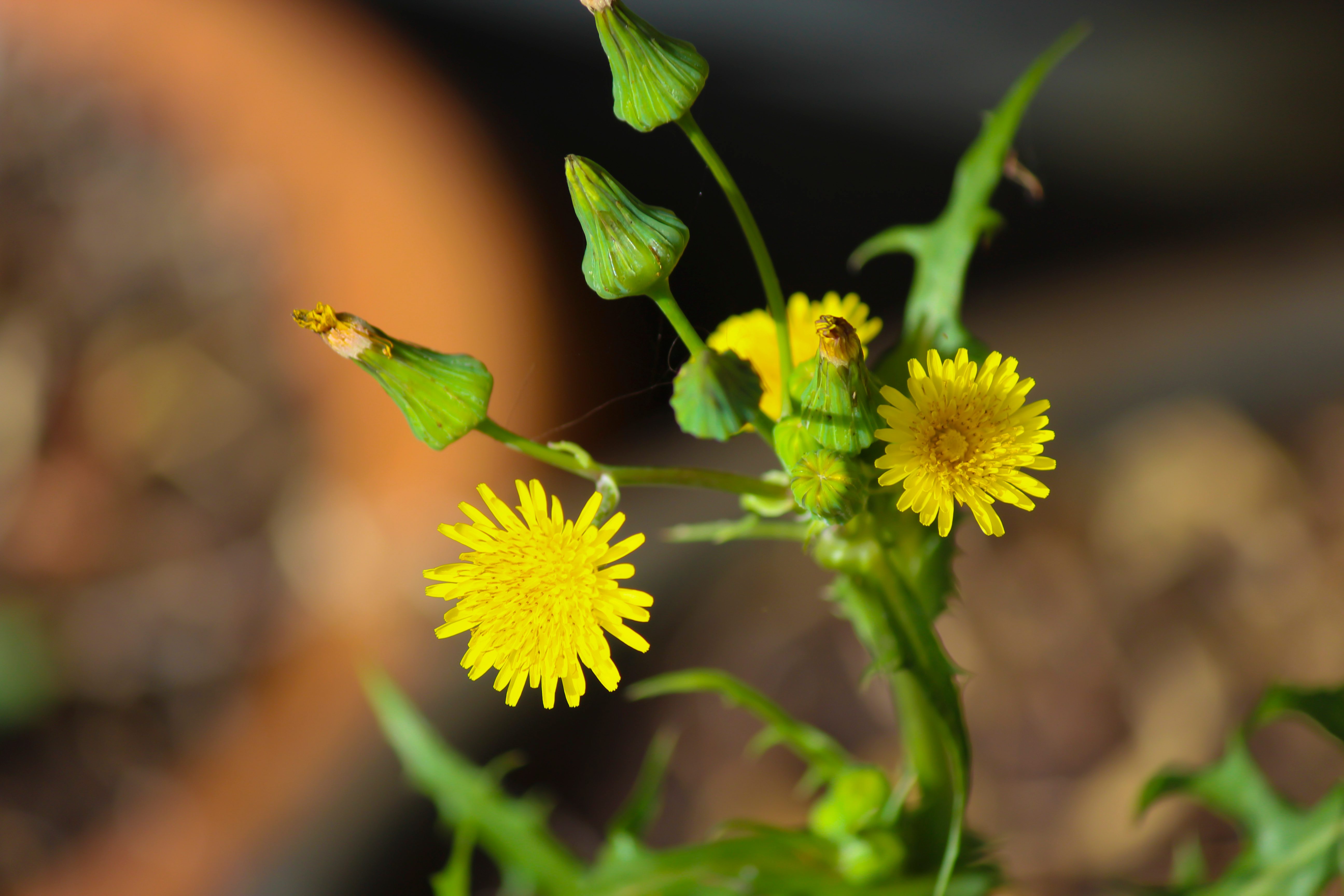 De melkdistel is goed te herkennen aan de lichtgele bloemhoofdjes, bestaande uit lintbloemen en slappe, grijsgroene bladeren. De melkdistel bloeit vanaf juni tot de herfst en vestigt zich het liefst in jouw moestuin, langs de heg, stoeprand en tegen de muur.