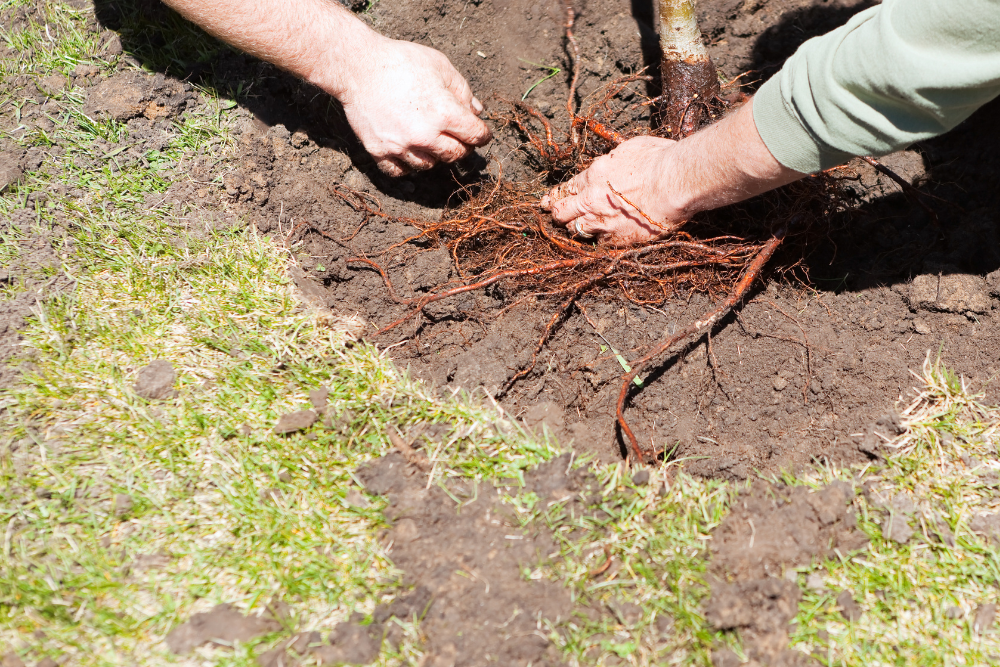 - Graaf een gat dat ruim genoeg is voor de wortels. Een goede vuistregel is dat het gat minstens twee keer zo breed en net zo diep is als het wortelstelsel.