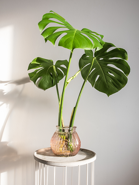 Stengelstek planten: de Monstera deliciosa, Monstera adansonii, Scindapsus, Epipremnum planten en veel Philodendrons.