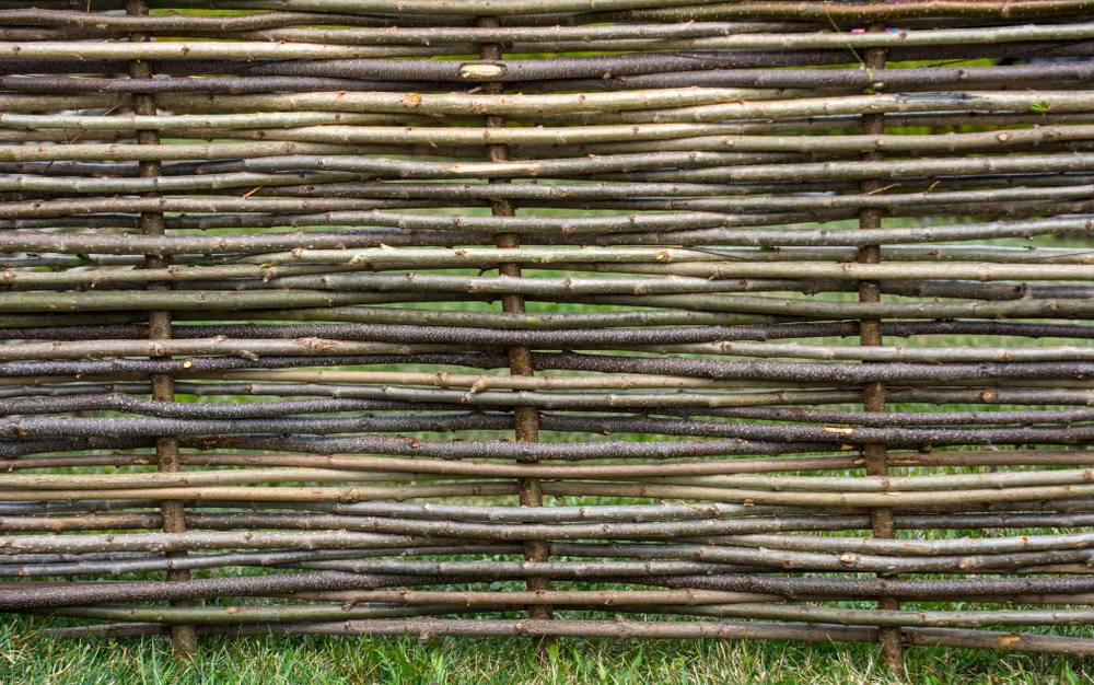 Als je een natuurlijke uitstraling zoekt in de tuin dan kan je met takken van de hazelaar of wilg een prachtig natuurlijk vlechtwerk creëren. Deze buigzame takken zijn ook perfect om ronde vormen te creëren. In plaats van paaltjes van tuinhout kan je hier ook gebruik maken van dikke takken die je in stukken zaagt. Vervolgens vlecht je de lange takken om en om door de paaltjes. De ene keer vlecht voor het paaltje langs en de andere keer erachter langs. Zo ontstaat er een stevig geheel. Net als bij de borderrol zorg je met worteldoek ervoor dat er geen aarde of wortels door de constructie groeien.