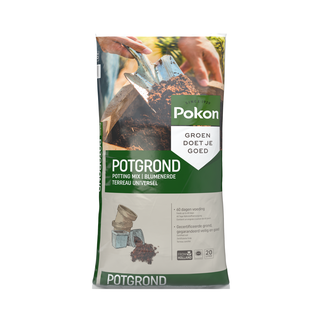- Gebruik Pokon Groene Planten Voeding of Pokon Bloeiende Planten Voeding om zelf voeding toe te voegen aan de grond. Heb je een plant met speciale wensen? Maak dan gebruik van Pokon Hortensia Voeding, Pokon Buxus Voeding, Pokon Rozen Voeding of een van de andere soorten voeding die Pokon biedt.